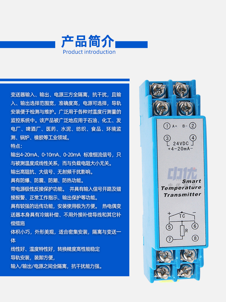 - 产品全称:温度转换模块——导轨式信号隔离器 信号变送隔离分配转换模块